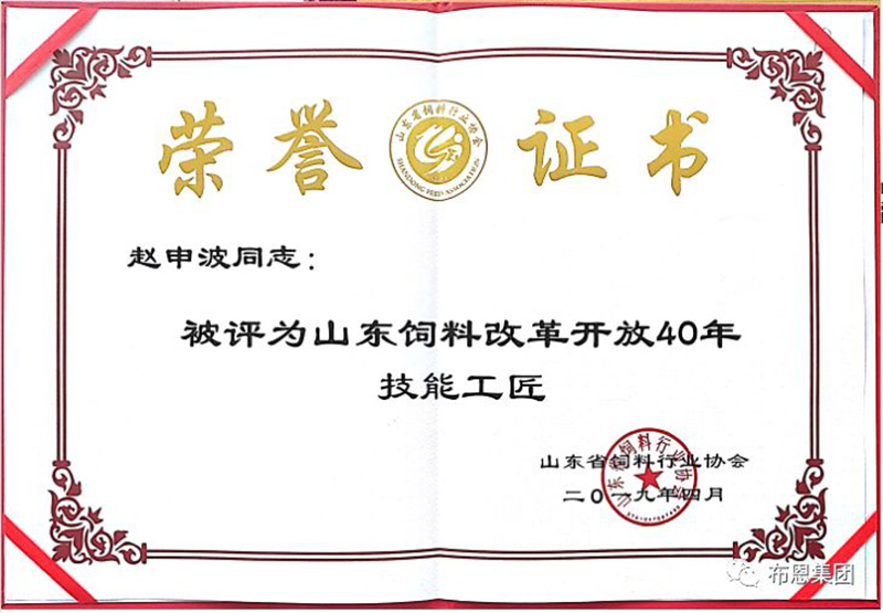 4月11日,山東省飼料行業(yè)年會(huì)在泰安舉行,我集團(tuán)多位骨干領(lǐng)導(dǎo)被授予先進(jìn)榮譽(yù)稱號(hào),布恩集團(tuán)董事長(zhǎng)于娟榮獲“山東飼料改革開(kāi)放四十年卓越人物”,布恩集團(tuán)于瑩榮獲“山東飼料改革開(kāi)放四十年領(lǐng)軍人物”,布恩集團(tuán)杜穎榮獲“山東飼料改革開(kāi)放四十年管理英才”,布恩集團(tuán)趙申波榮獲“山東飼料改革開(kāi)放四十年技能工匠”先進(jìn)個(gè)人稱號(hào)。
