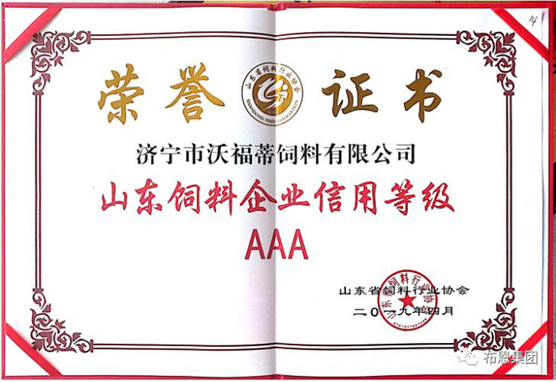 為進(jìn)一步加強(qiáng)我省飼料生產(chǎn)企業(yè)的管理,規(guī)范市場(chǎng)行為,營(yíng)造遵法、自律、誠(chéng)實(shí)、守信的行業(yè)競(jìng)爭(zhēng)環(huán)境,逐步建立飼料行業(yè)信用體系和信用管理運(yùn)行機(jī)制,樹(shù)立飼料行業(yè)企業(yè)信用形象,塑造企業(yè)信用品牌,提升企業(yè)綜合競(jìng)爭(zhēng)力,降低社會(huì)信息成本,創(chuàng)建良好的市場(chǎng)經(jīng)濟(jì)秩序和信用環(huán)境。山東省飼料行業(yè)協(xié)會(huì)受山東省畜牧獸醫(yī)局委托,對(duì)山東省飼料生產(chǎn)企業(yè)開(kāi)展了信用等級(jí)評(píng)價(jià)活動(dòng)。布恩集團(tuán)旗下:日照市惠生飼料有限公司、濟(jì)寧市沃福蒂飼料有限公司榮獲飼料企業(yè)信用等級(jí)AAA級(jí)榮譽(yù)。