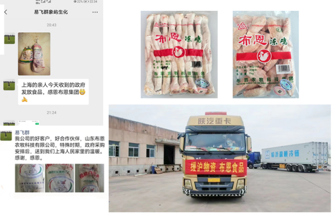 山東布恩集團(tuán)有限公司作為山東省農(nóng)業(yè)產(chǎn)業(yè)化重點(diǎn)龍頭企業(yè),其禽類肉制品以其綠色健康深受社會(huì)的喜愛(ài),尤其鴨產(chǎn)品做的老鴨湯,具有養(yǎng)肺生津、止咳潤(rùn)肺的功效。4月12日,上海青浦區(qū)政府向布恩集團(tuán)提出采購(gòu)133噸禽肉畜產(chǎn)品的需求,布恩集團(tuán)立即行動(dòng),嚴(yán)格落實(shí)防疫措施,在落實(shí)人員防疫管理、廠區(qū)消殺等工作的同時(shí),安排員工加班加點(diǎn)生產(chǎn)裝配,當(dāng)天就緊急首批配送,14日,青浦區(qū)人民在朋友圈紛紛曬出布恩集團(tuán)雞鴨產(chǎn)品的照片。